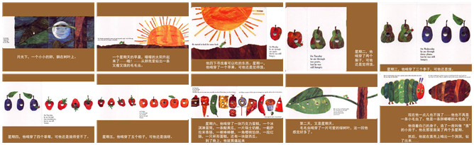 《肚子好饿的毛毛虫》绘本故事PPT。在一个月夜里,一枚小小的虫卵,静静的挂在树枝上。一个星期后的早上,温暖的太阳升了起来。啪!一条小小的毛毛虫从卵壳里爬出来。他非常饿,到处找着能吃的东西。第一天,他咬穿了一个大红苹果,但是他还是感觉很饿。第二天,他咬穿了两个鸭梨,但是他还是感觉很饿
