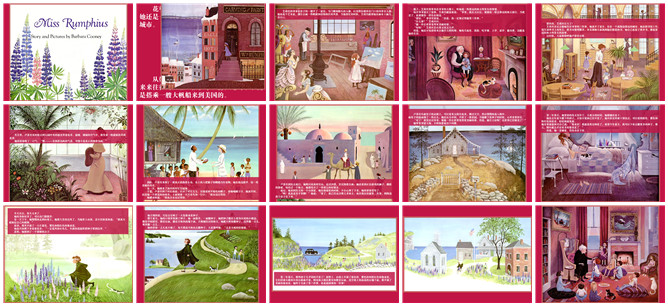 《花婆婆》绘本故事PPT。花婆婆住在海边的小房子里,四周开满了紫色、粉色和蓝色的小花。花婆婆了年纪很大了,她是我的姨婆,个子很小,她原来不是这样的。她告诉我一些过去的