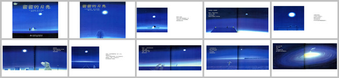 《圆圆的月亮》绘本故事PPT。小屋里,女孩仰望星空:“好美的月亮。”夜猫站在屋顶上说:“月亮,听我给你唱歌吧!”夜猫快乐的唱起了歌。长椅上,两只小鸟白天吵架了,可在月光下和好了。迷路的小狗对着月亮说:“月亮,告诉我回家的路吧。”