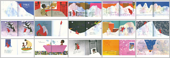 《下雪天》绘本故事PPT。冬天的早上,彼得醒来望着窗外的冰天雪地,他穿上雨衣跑到屋外。路两边的雪堆得高高的。他在雪地来回走,在雪地里发现一根树枝,拍打树上的雪,雪掉在彼得的头上。他想和哥哥们打雪仗,但他还小,于是他自己堆雪人。他爬上雪山再滑下来。他把雪团成雪球,打算留着明天继续玩,晚上他伤心的发现雪球不见了