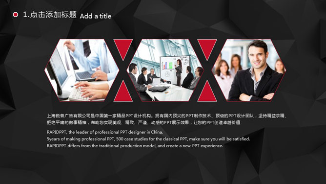 模板,黑色低多边形背景,红色主色调,漂亮的动态沙漏效果,风格时尚大气。