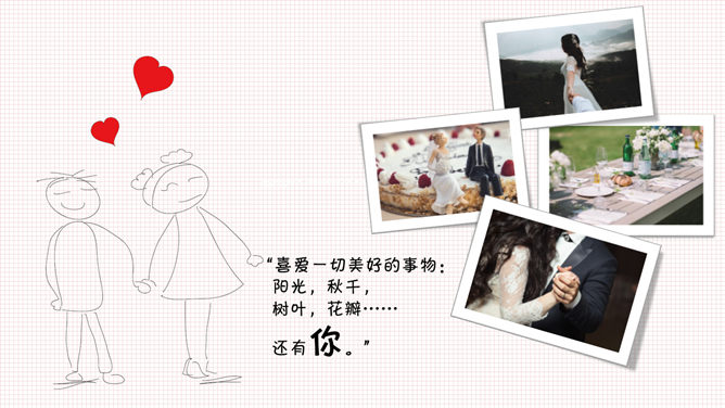 卡通手绘情人节相册PPT模板。一套情人节电子相册幻灯片模板,可爱卡通手绘设计风格。建议安装字体: