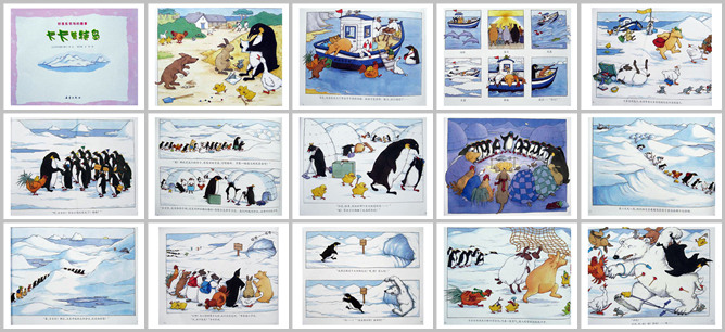 《卡卡莫特岛》绘本故事PPT。这天早晨企鹅古古乐收到他的表弟哈里寄来的一封加急求助信,古古乐决定立即动身,他的朋友们都要陪他一起去。当天,大家都上开往卡卡莫特岛的船。一路上他们遇到了风暴、大雾、海豚,还有冰山,经过千辛万苦,他们终于到了岛上。哈里带领大家来迎接他们。古古乐他们被美景惊呆了。古古乐问:“巨大的危险是?”