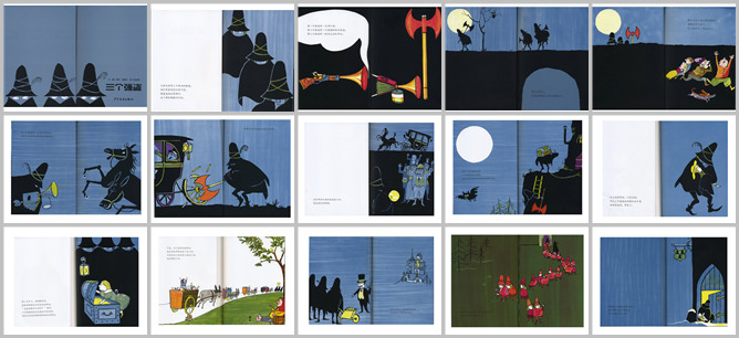 《三个强盗》绘本故事PPT。从前有三个凶恶的强盗,戴着黑帽子,穿着黑斗篷,出门总是躲躲闪闪的。第一个强盗的武器是喇叭枪,第二个强盗的武器是胡椒粉喷壶,第三个强盗的武器是红色的大斧头。一到晚上天黑他们就出去找倒霉的人。所有的人看到他们就害怕逃命。每次他们都是先用胡椒粉喷马眼睛,然后用斧子砍碎车轮,再用喇叭枪把乘客赶出来