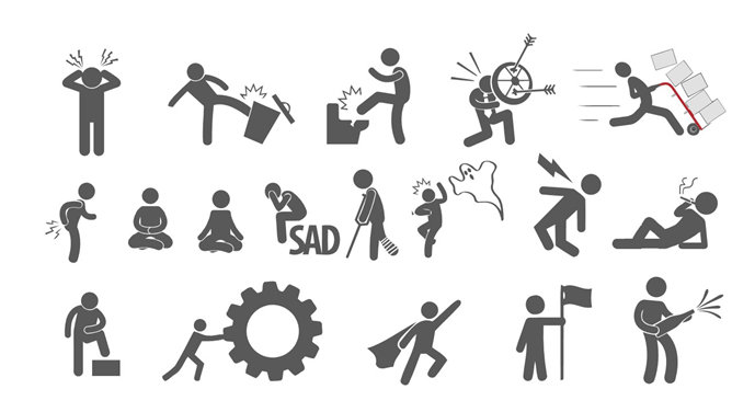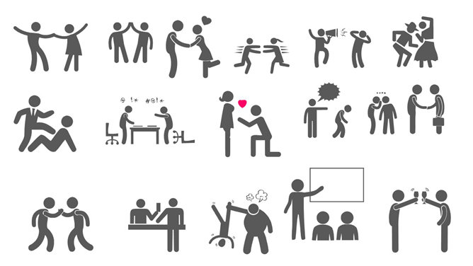 火柴人幻灯片素材,纯PPT绘制,取消组合后完全可编辑。关键词:打招呼 疑问 思考 拍手 赶时间 办公 打电话 运动健身。