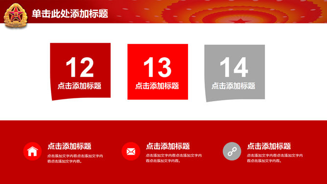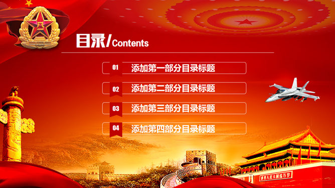 三军敬礼建军节PPT模板,28页宽屏。关键词:陆海空三军仪仗 红色军旗 适合庆祝八一建军节使用。