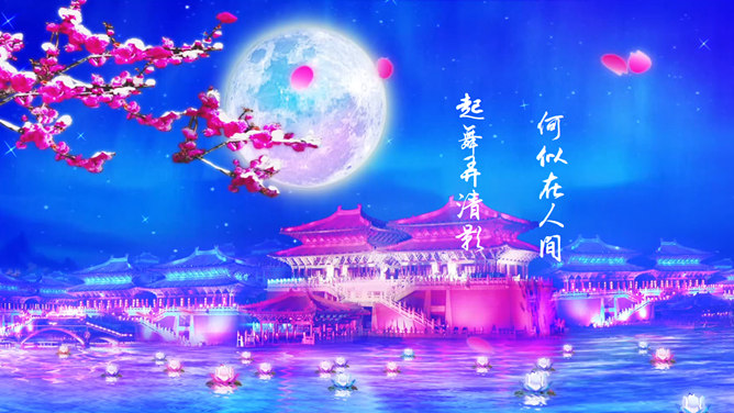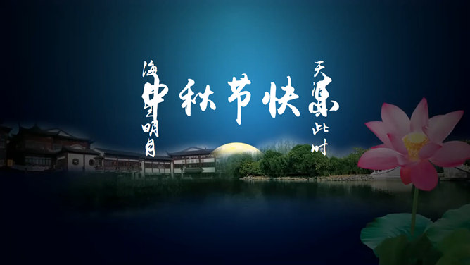 恭贺中秋动态PPT动画模板,祥云飘来,蝴蝶飞舞动态效果。关键词:荷花 明月月亮 古典中国风
