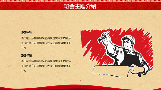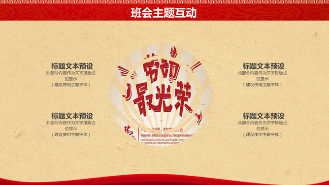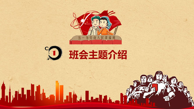 五一劳动节主题班会PPT模板。一套精美的五一国际劳动节班会幻灯片模板,创意复古怀旧设计风格。