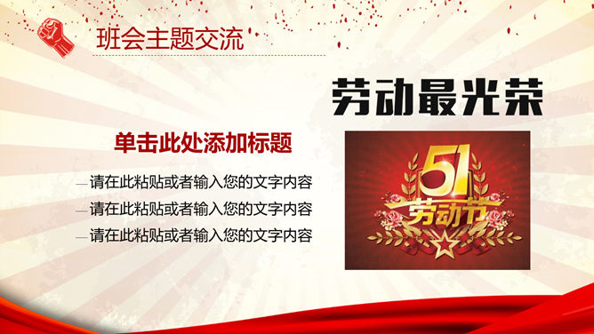 五一劳动节主题班会PPT模板