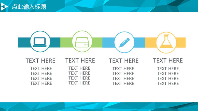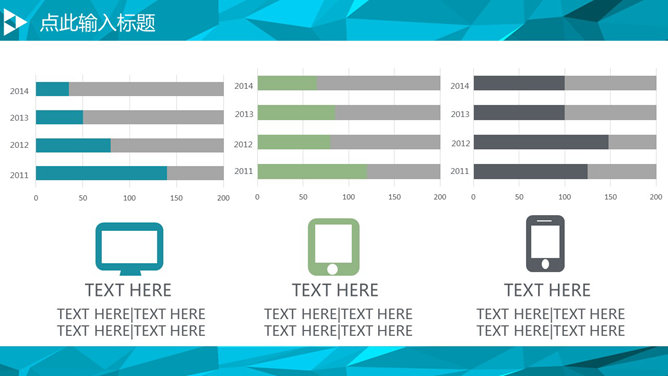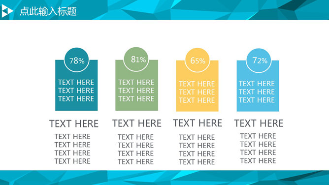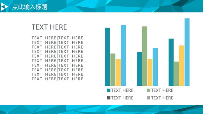 ,首页用小三角形装饰,百叶窗动态切换效果,内页采用低多边形背景,共20页,图形图表丰富。