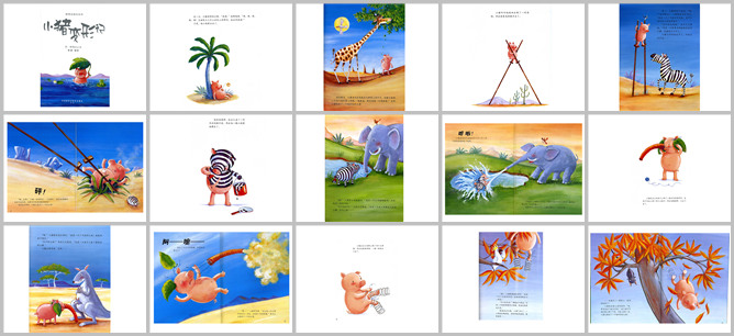 《小猪变形记》绘本故事PPT。小猪总觉得自己不开心不幸福,他一会装扮成鹦鹉,一会装扮成长颈鹿,一会装扮成斑马,最后,他还是想做一只快乐的小猪,他懂了,做自己,最幸福。小猪满脑子新奇的想象,模仿别的动物,最后都失败了,最后找到自己作为猪的乐趣。这个温情幽默的小故事背后是生活的哲理,展示了小猪“认识自我”的过程