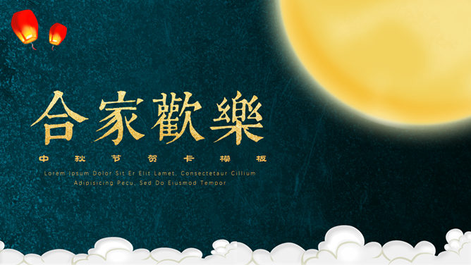 阖家欢乐欢度中秋PPT模板。一套中秋节主题幻灯片模板,大气简约设计,可用于向亲朋好友送出中秋祝福。