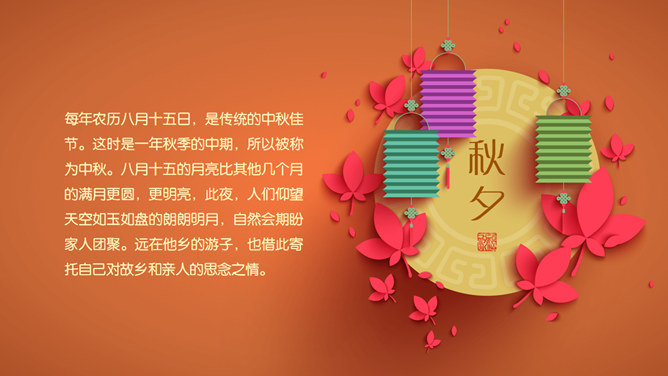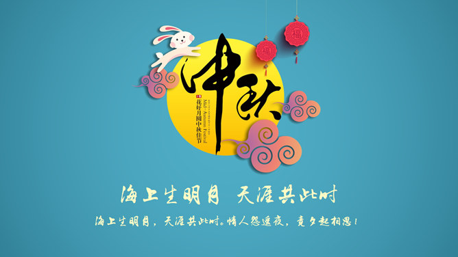 微立体扁平化中秋节PPT模板。一份动态中秋节PPT模板,精美微立体扁平化设计风格。建议安装字体: