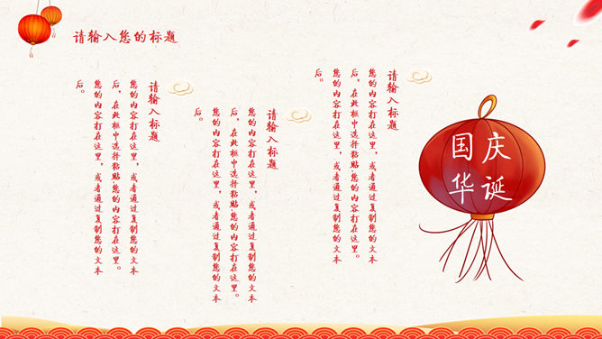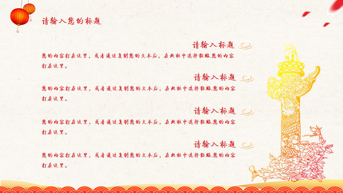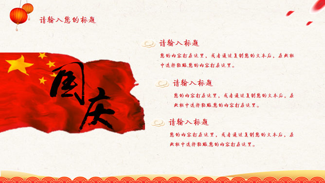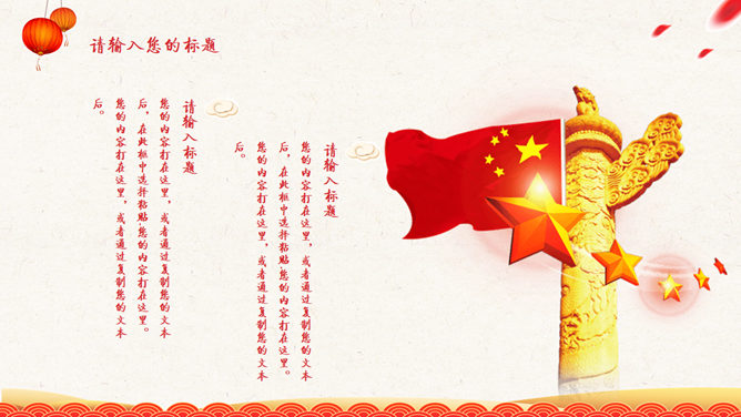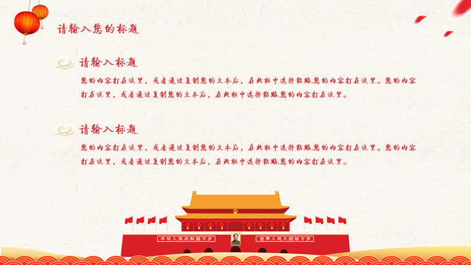 祖国生日喜迎国庆节PPT模板。庆祝祖国的生日,喜迎国庆节通用幻灯片模板,天安门、国庆背景。