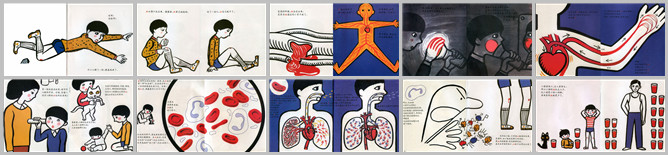 《血的故事》绘本故事PPT。一份讲解血液知识的儿童绘本,非常生动,寓教于乐。哎呀! 好疼啊!不小心摔了一跤,膝盖跌破了。血从伤口流出来,摸摸看,血有点粘粘的。过了一会儿,血自己就干了。受伤的时候,血会流出来,是因为血通过的小管子破了。血通过的管子就叫做血管。在身体里,血管通到每一个地方。连手指尖、脚趾尖和头顶也都有。试试看,把手蒙在手电筒上,你会看到什么颜色呢?血管里的血不断地流。为什么呢?原来是心脏不断挤压推动着血