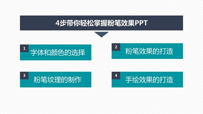 手绘粉笔效果制作PPT教程。粉笔效果很有创意,让人眼前一亮,本教程详细的手把手教你如何打造手绘粉笔效果。包括字体和颜色的选择、粉笔效果的打造、粉笔纹理的制作、手绘效果的打造几个部分。详细实用的一份教程。