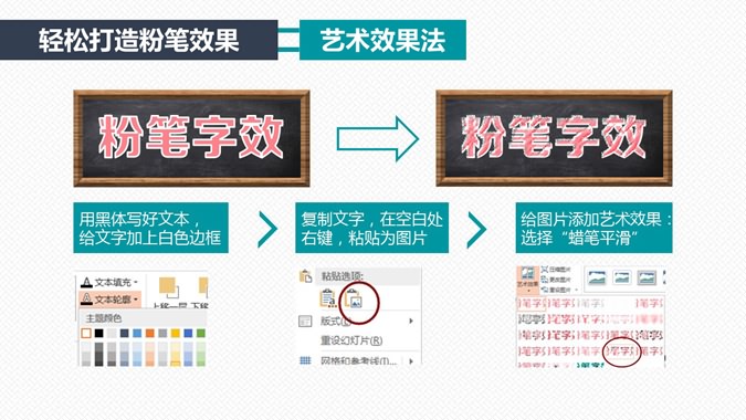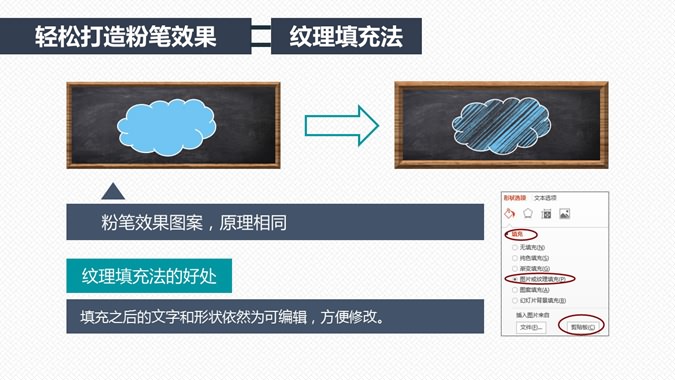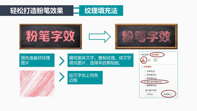手绘粉笔效果制作PPT教程。粉笔效果很有创意,让人眼前一亮,本教程详细的手把手教你如何打造手绘粉笔效果。包括字体和颜色的选择、粉笔效果的打造、粉笔纹理的制作、手绘效果的打造几个部分。详细实用的一份教程。