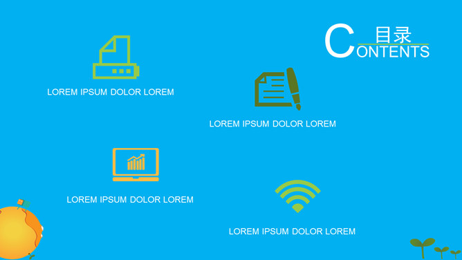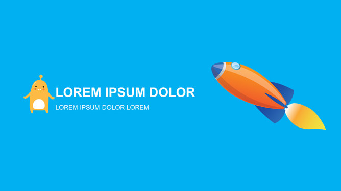 简约扁平化创意卡通PPT模板。一套卡通风格幻灯片模板,小怪物站在星球背景,蓝色底色,扁平化设计风格。