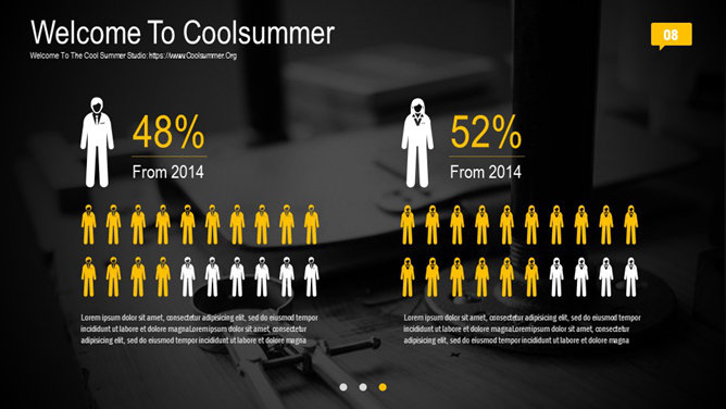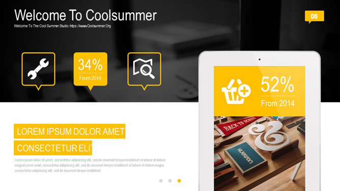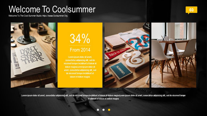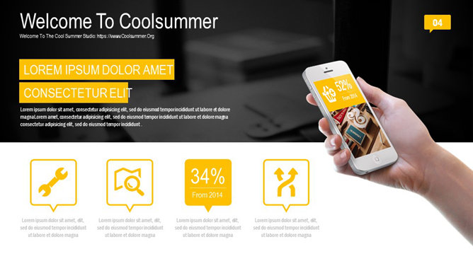 一份非常精美漂亮的幻灯片模板,黑黄配色,时尚杂志设计风格,炫酷的动态播放效果,页面丰富,堪比收费级模板。