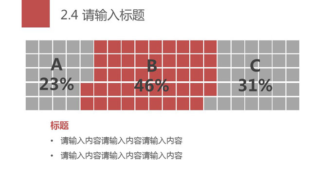 一份极简风格的幻灯片模板,采用纯色色块设计,白色背景,简约清新,共27页,丰富的页面布局类型、图形图表及图片展示页面,非常实用,此处仅摘录几页展示,更多精彩内容请下载,首页及结束页修改请从母版中修改。