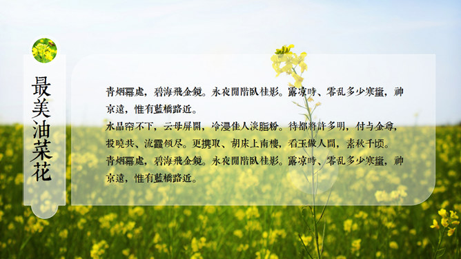 唯美油菜花田风景PPT模板。一套唯美清新自然油菜花田风景幻灯片模板,使用字体: