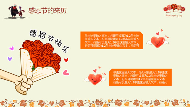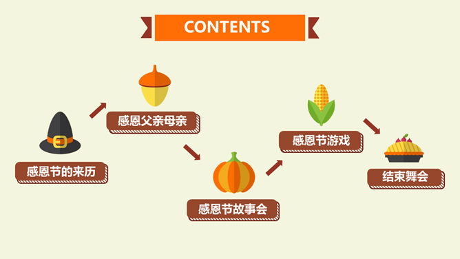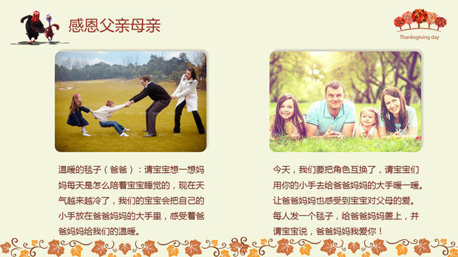 感恩节活动策划方案PPT模板。一套感恩节活动策划幻灯片模板,包括感恩节的来历、感恩父亲母亲、故事会等环节。