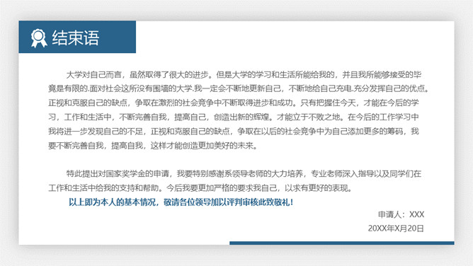 大学生奖学金申请答辩PPT模板