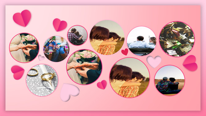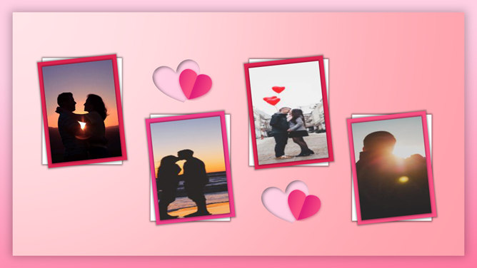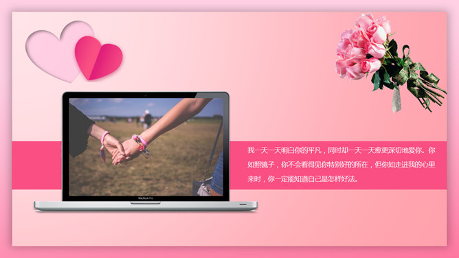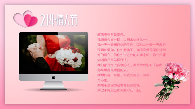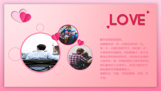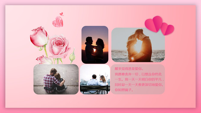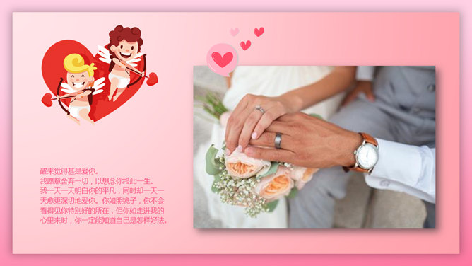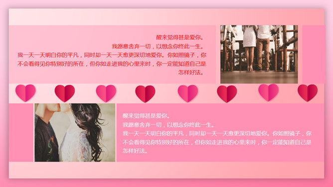 ,以连在一起的红心为背景,象征恋人之间心心相印,粉红色色调,适合情人节相关场合或主题。