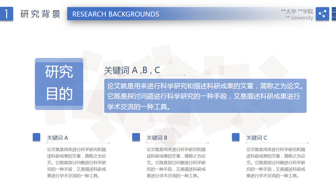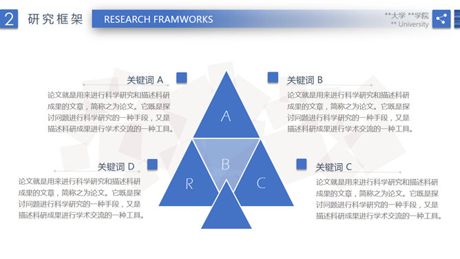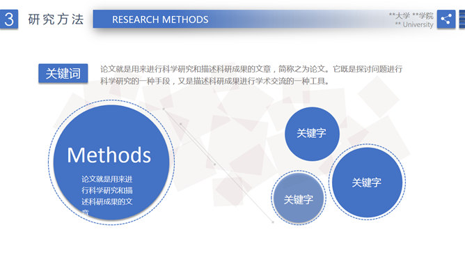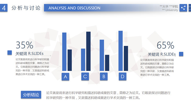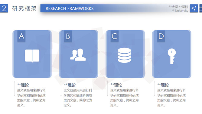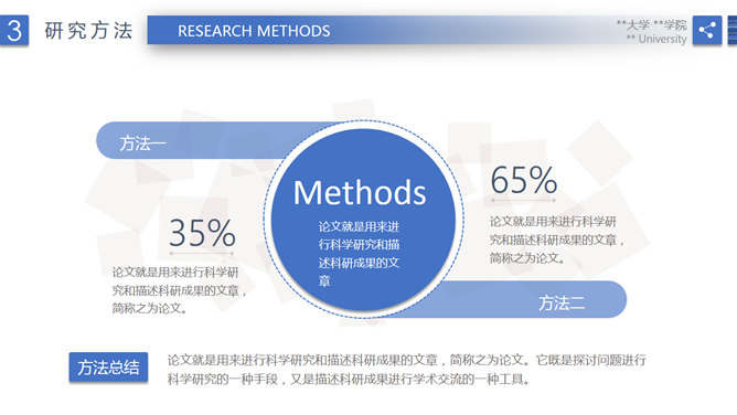 一份强大的毕业设计论文答辩PPT模板,纯白色背景,浅蓝色主色调,共26页,页面类型非常丰富全面,包括研究背景、理论框架、研究方法、分析与讨论、结论与建议、文献综述几个部分,可自行修改,完整动态效果请点击动态预览。更多同类模板浏览:毕业论文PPT模板下载。本模板来源于OfficePLUS。