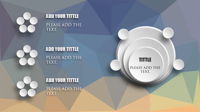 一份非常精致好看的微立体风格幻灯片模板,时尚的低多边形背景,淡入淡出切换效果,关键词: