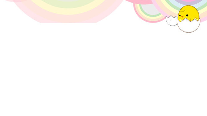 破壳而出的可爱小鸡PPT背景图片。关键词:彩虹圆圈背景 蛋壳 鸡蛋 萌萌的小鸡 适合女生儿童