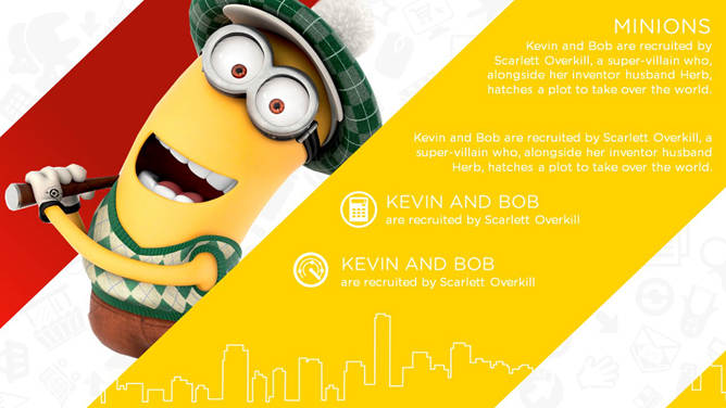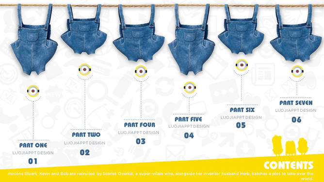 《Bello》小黄人主题PPT模板。小黄人是《神偷奶爸》中的角色,这群小家伙凭借卖萌的一招在全球赢得了无数的粉丝。建议安装字体:Bauhaus LT Heavy、Gotham Rounded Book、Gotham。
