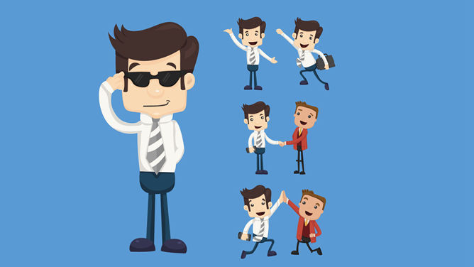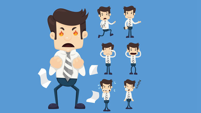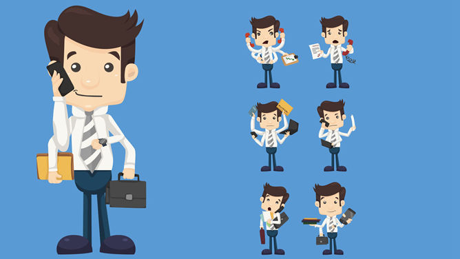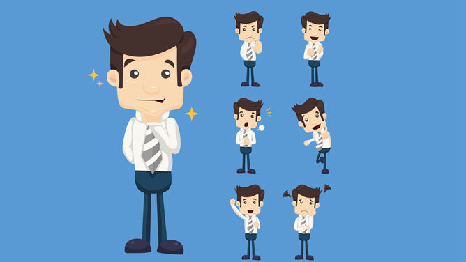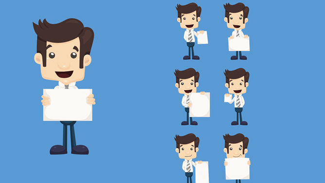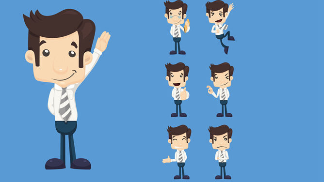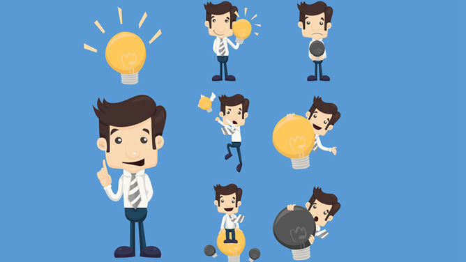扁平化矢量卡通小人PPT素材,纯PPT绘制,完全可编辑,非常形象生动,包括各种手势、工作、灵感、抓狂等动作表情。