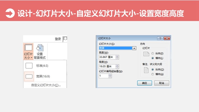PPT页面尺寸自定义设置教程。大猫菲菲5号教程:一步教你设置PPT页面尺寸。步骤:设计—幻灯片大小—自定义幻灯片大小—设置宽度高度。这样连banner都能做了,PPT的功能很强大吧。