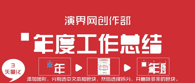 制作连体字标题PPT教程。设计师陈魁用PPT做淘宝式标题系列教材之三—加底法。步骤:1、输入文字。2、选字体:文字拉开层次,主标题换成“汉仪综艺简体”3、矢量化:添加图形,分别选中文本和色块,然后选择拆分,并删除多余的色块。4、加连接:黄色为要剪除,蓝色为要补充。5、加背景:用任意多边形或曲线描边。