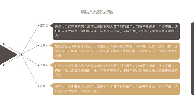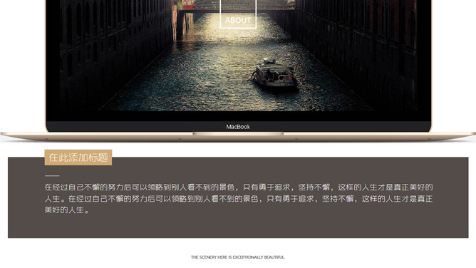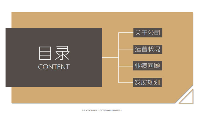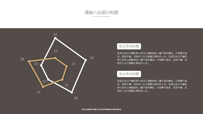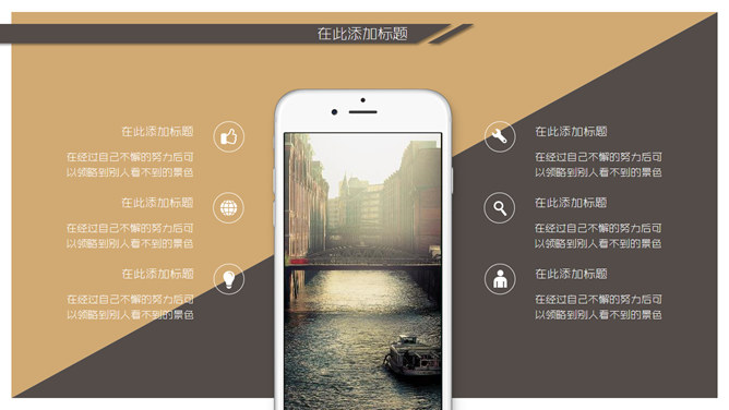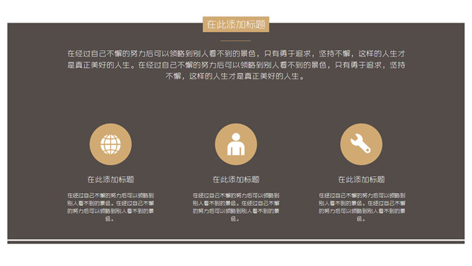 扁平化大气实用商务PPT模板,首页采用全图型背景图片,大气时尚,扁平化设计风格,灰棕配色,共23页,页面丰富多样,包括目录页、过渡页、图文展示页、地图、雷达图等,非常好看的动态播放效果。更多同类模板:商务PPT模板下载。