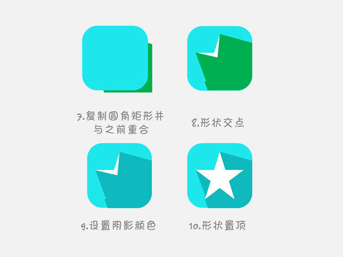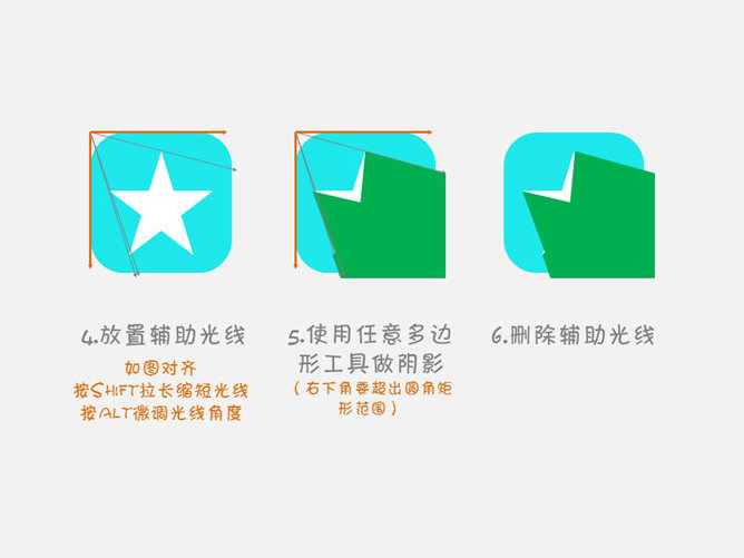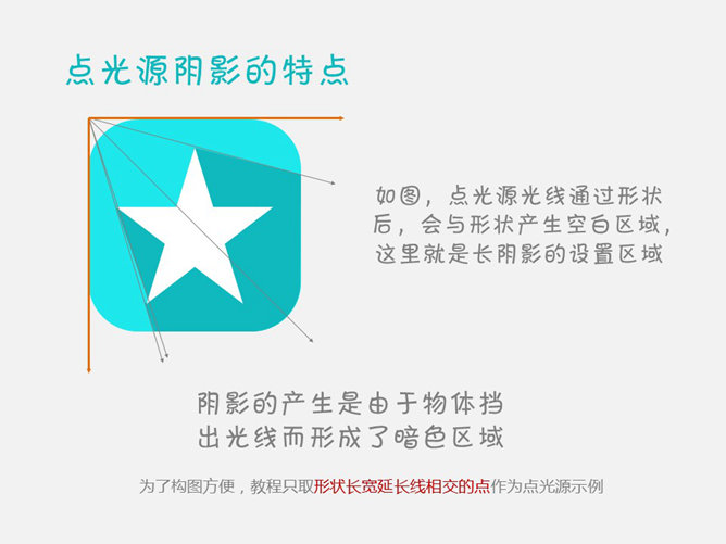 点光源长阴影效果设计PPT教程。步骤:1、圆角矩形。2、图标主体。3、左右、上下对齐。4、放置辅助光线。5、使用任意多边形工具做阴影。6、删除辅助光线。7、复制圆角矩形并与之前重合。8、形状交点。9、设置阴影颜色。10、形状置顶。作者:只为设计。