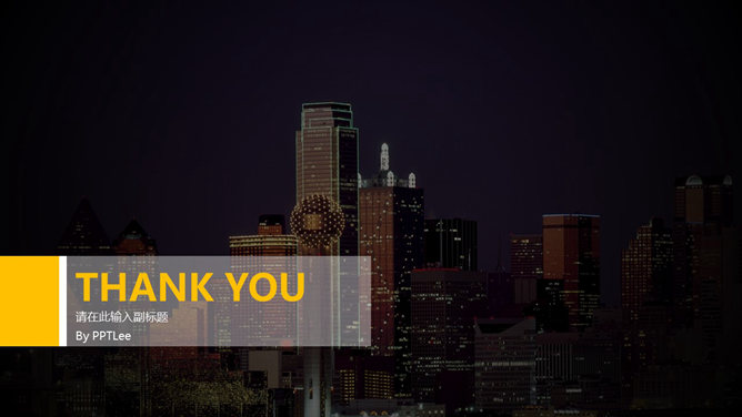 大图背景商务风格PPT模板,繁华都市夜景大图背景,风格大气,极具商务气息,页面虽少,但基本的页面类型齐全。