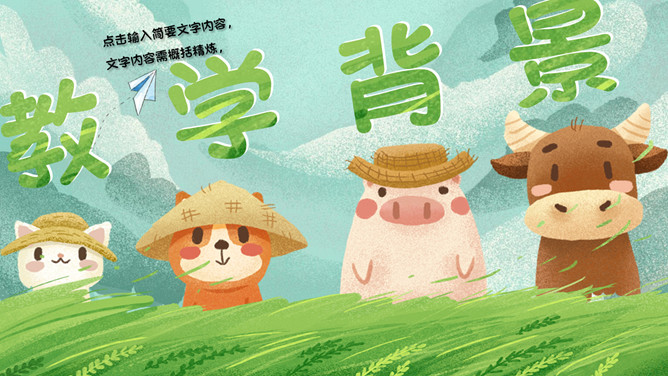 水彩插画风可爱小动物PPT模板。一套科通风格模板,水彩可爱小牛、小猪、小猫、小狗背景,适合幼儿课件使用。