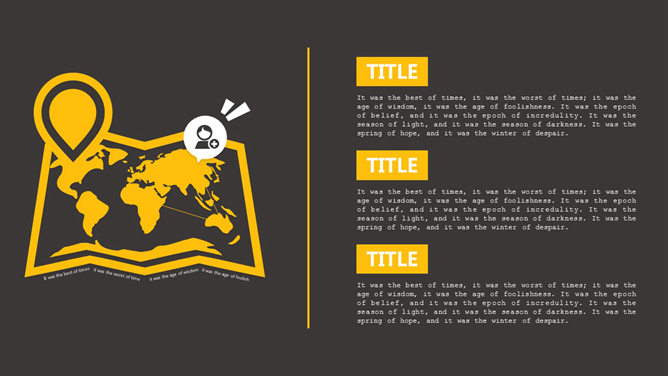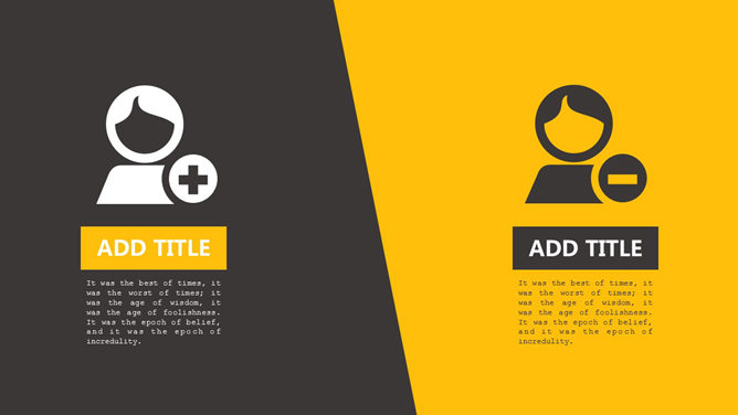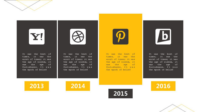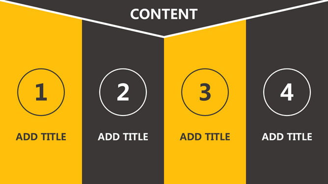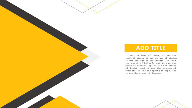 简约黑黄配色动态PPT模板,醒目的黑黄配色,简洁扁平化的设计风格,华丽的动态页面切换效果,适用场合广泛。