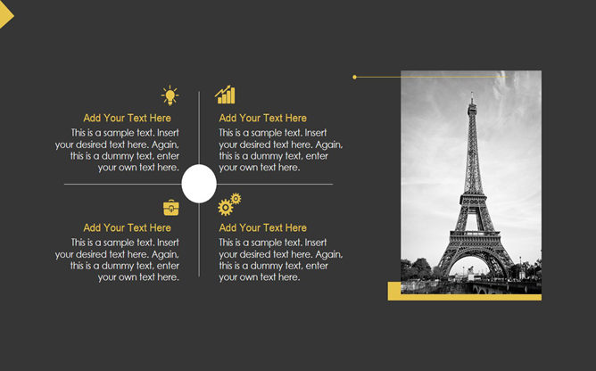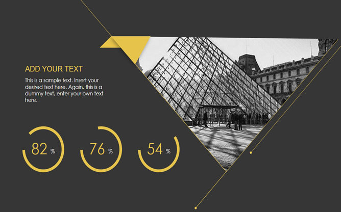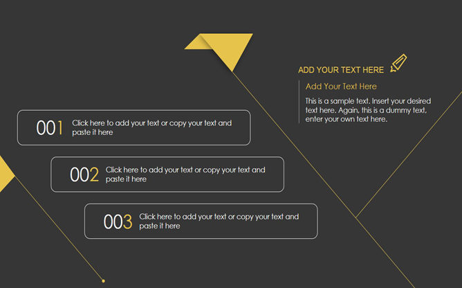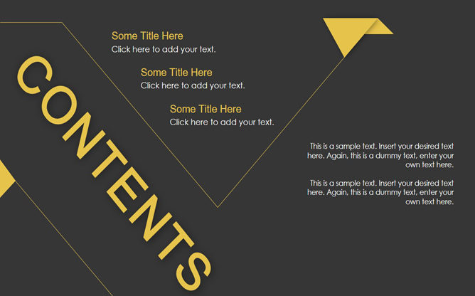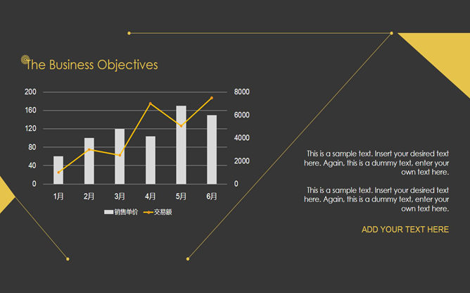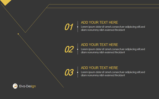 黑色极简创意时尚PPT模板。一份时尚简约的幻灯片模板,黑色背景黄色配色,黄色细线区块划分及装饰,时尚有创意,共17页,页面类型齐全丰富,适用性强用途广泛,可用于年终总结、工作报告、商务场合等用途。