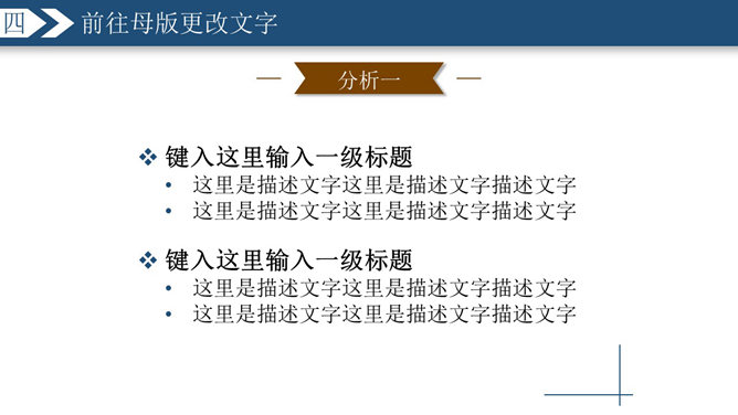 一份简洁朴素大方的PPT模板,深蓝色主色调,灰白色背景,大气稳重,以文字排版为主,实用性通用性强,适用广泛。