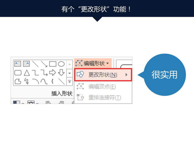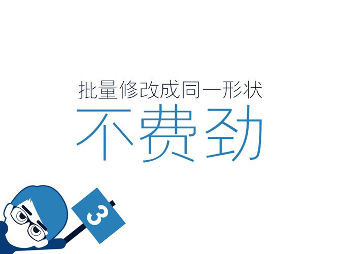 PPT设计师@嘉文钱“壹技巧拯救地球系列”PPT教程第三弹:批量修改成同一形状不费劲。步骤:1、选中你要更改的形状。2、在“绘图工具格式”选项卡里面的左侧选择“更改形状”。选取你想修改的形状就可以了。