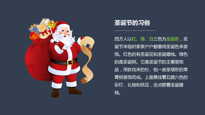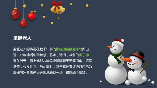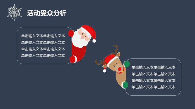 圣诞老人驯鹿圣诞节PPT模板。一份圣诞节活动策划幻灯片模板,以圣诞老人、驯鹿、铃铛等圣诞元素设计。