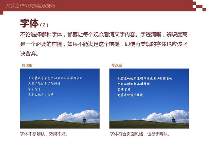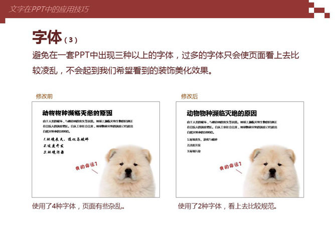 文字在PPT中的美化处理技巧,包括字体的选择、字号大小的调整、字体颜色的选择、文字的排版布局等,非常适合新手的实用技巧。作者@灰色的风。