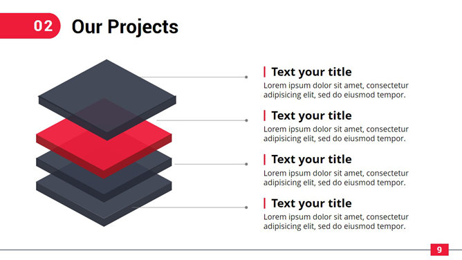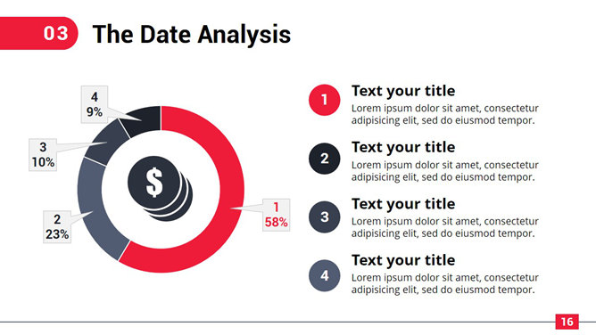 黑红简约大气商务报告PPT模板。黑色配色显得庄重大气却又不呆板,纯白色背景,简约扁平化的设计风格,图表图形页面类型丰富,另外还有蓝黑、黄黑两种配色可供选择。