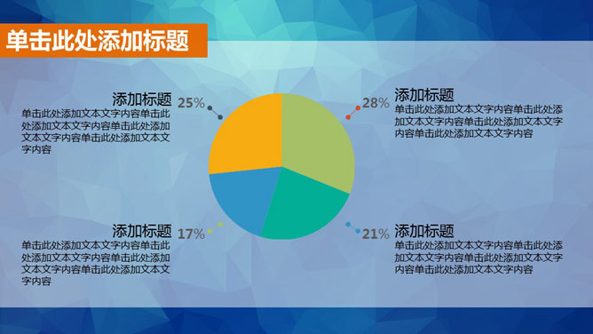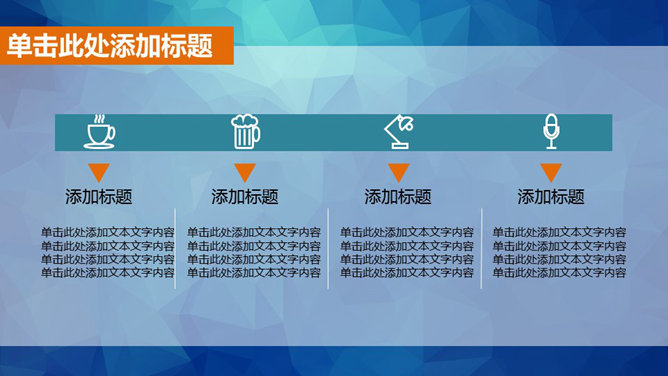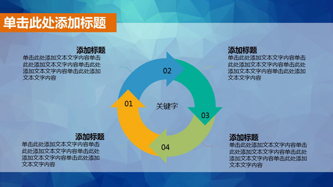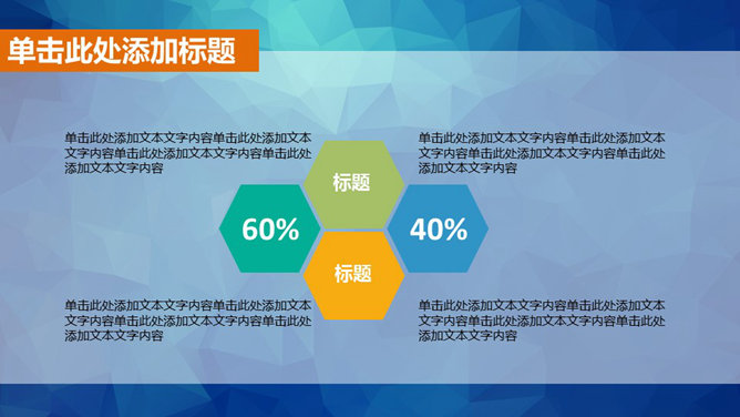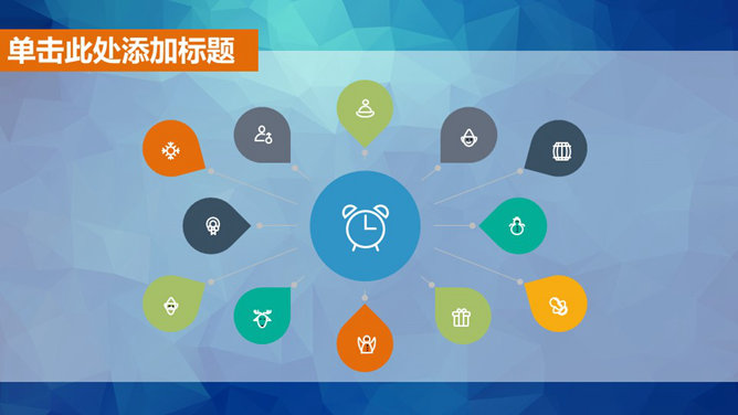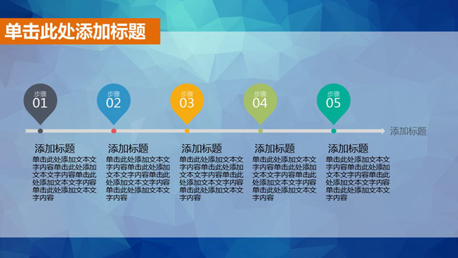 清爽蓝色动态多用途PPT模板。清爽蓝色low poly低多边形背景,清新彩色配色,共20页,页面类型丰富,好看的动态播放效果,多功能多用途。