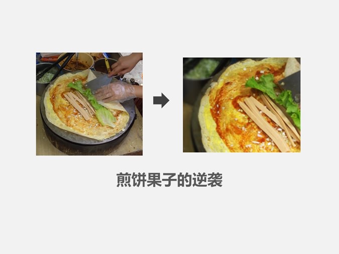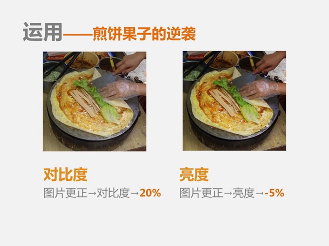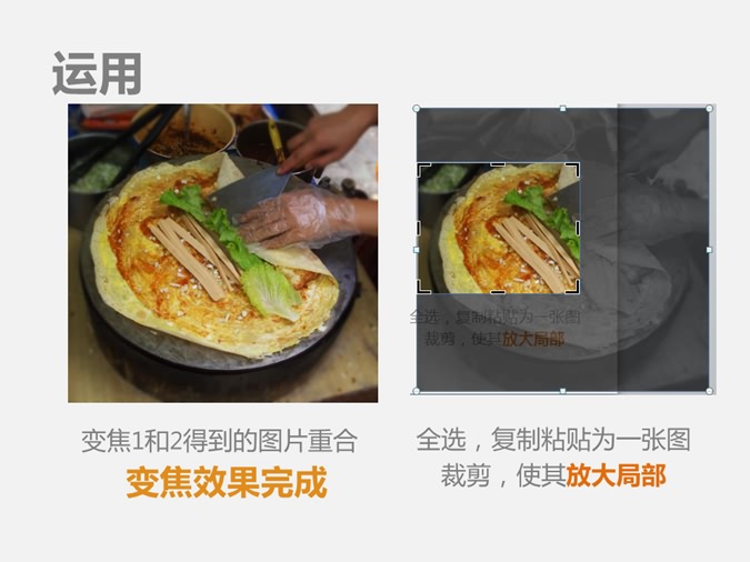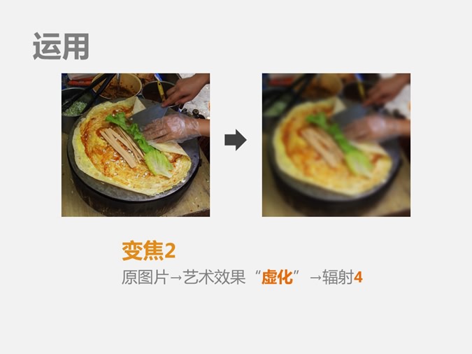 以舌尖上的中国中的摄影效果为例,通过调节对比度、亮度、变焦达到局部放大,远处模糊,达到美化图片的效果。