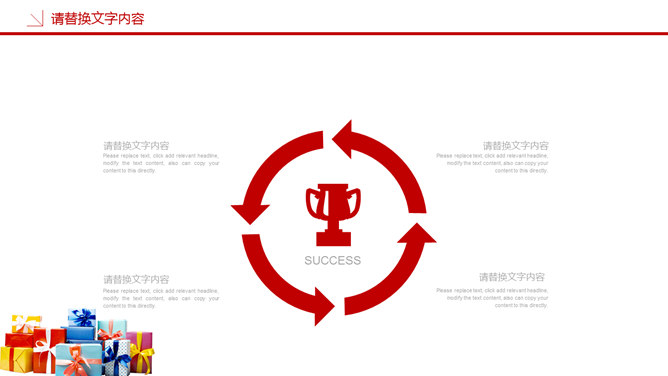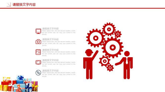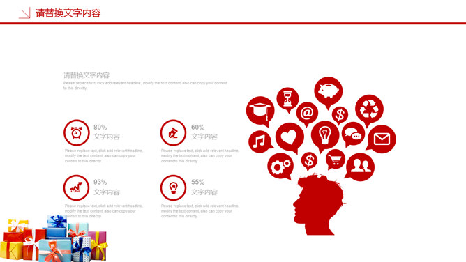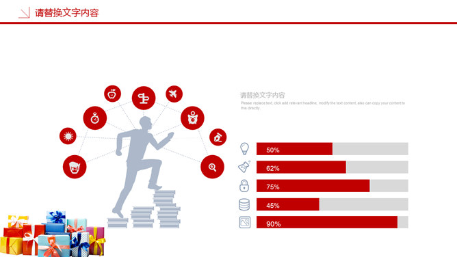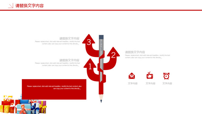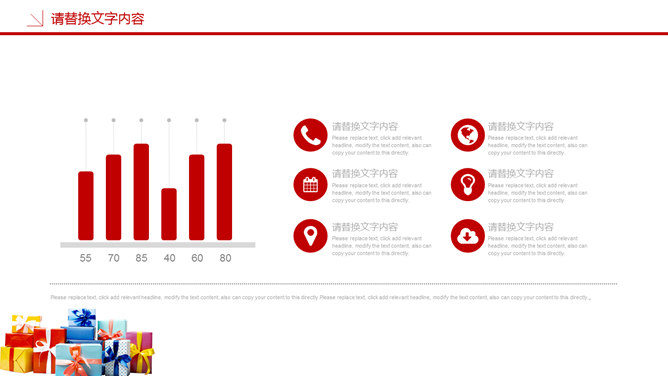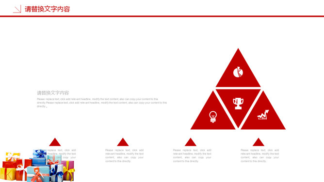 圣诞节活动策划PPT模板。一套圣诞节活动策划幻灯片模板,喜庆红色主色调,多种圣诞元素装饰。