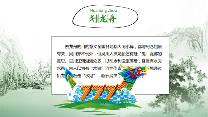 这是一组适合用于端午节相关的PPT背景图片,以美味的粽子、中国龙、绿竹为主要背景元素,可用于介绍或庆祝端午节。